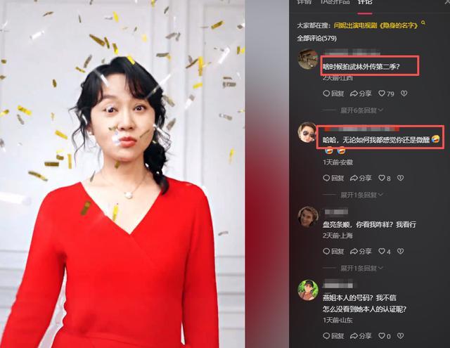 网友们看到视频后纷纷在评论区留言,有人询问闫女士什么时候拍武林外传第二季,也有人调侃她什么时候都有种“微醺”的感觉。